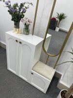 این جاکفشی از ترکیب ام دی اف و فلز ساخته شده. جاکفشی دارای 3 درب طرح گنبدی میباشد